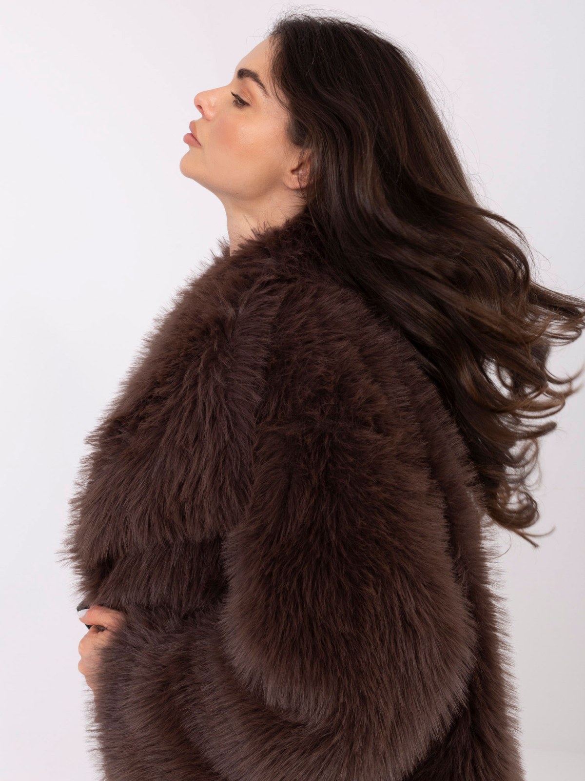 Jachetă de blană artificială neagră, cu o croială elegantă și buzunare practice, ideală pentru sezonul toamnă/iarnă. Materialul moale, cu aspect pufos, oferă confort și un look modern, iar căptușeala interioară completează funcționalitatea.